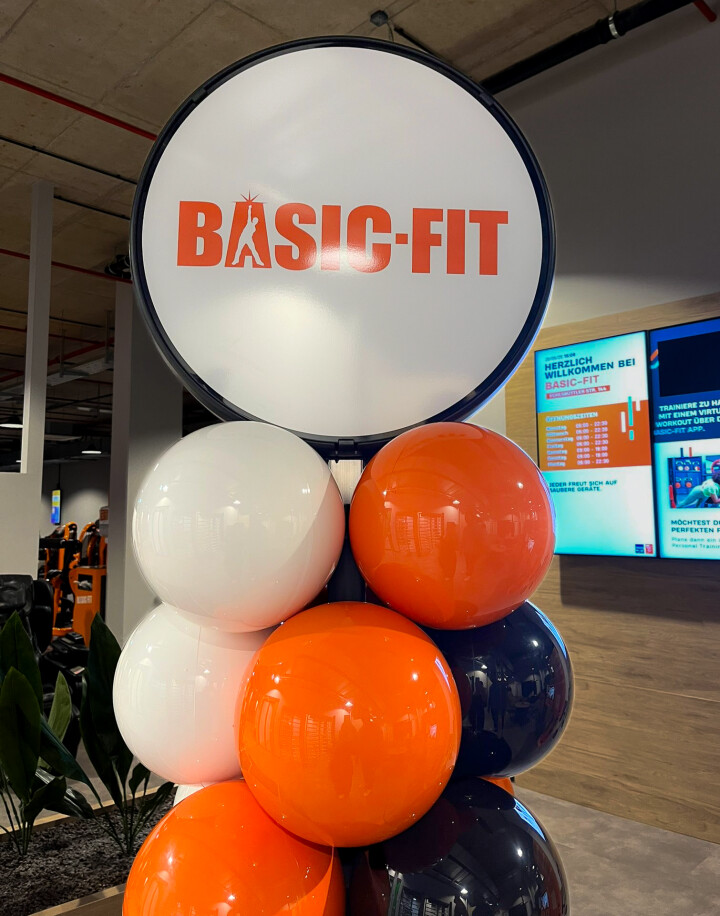 Während des speziellen Opening Weekends von Basic-Fit in Deutschland erhielten sowohl bestehende als auch neue Mitglieder einen besonderen Mehrwert: die Möglichkeit, eine Begleitperson kostenlos mitzubringen. Für diese bundesweite Kampagne wurden 27 Standorte mit langlebigen Ball On Säulen in der markentypischen Basic-Fit Optik ausgestattet. Die Säulen zogen sofort die Aufmerksamkeit auf sich, am Eingang oder direkt im Trainingsbereich, und sorgten für eine professionelle und energiegeladene Atmosphäre.