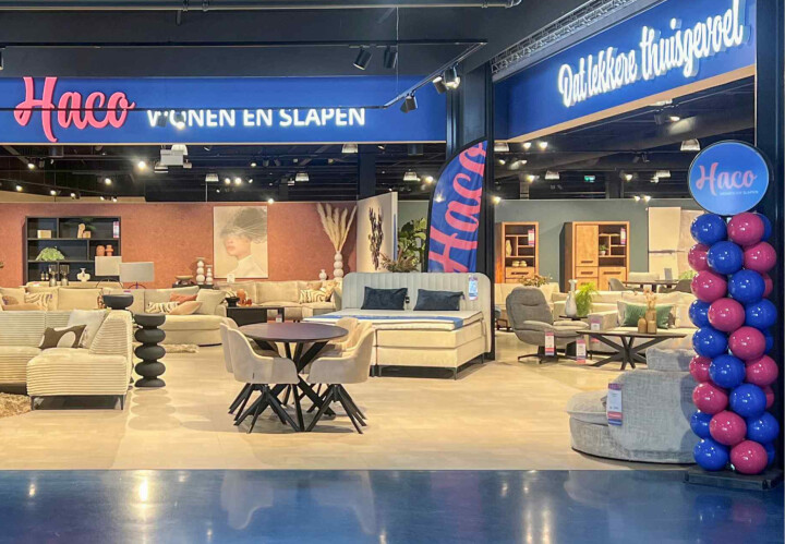 Eine neue visuelle Identität braucht einen auffälligen Auftritt. Haco Wonen & Slapen verabschiedete sich von seinem vertrauten Farbkonzept in Grün, Gelb und Schwarz. An seine Stelle trat eine kraftvolle und moderne Kombination aus Dunkelblau und Magenta. Um diese Neuausrichtung klar und erkennbar an allen Standorten sichtbar zu machen, wurde Ball On beauftragt. Wir realisierten eine auffällige visuelle Kampagne, die den Wandel nicht nur kommunizierte, sondern für jeden Besuchenden auch spürbar machte.